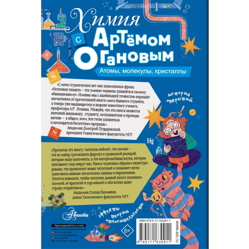 Артём Оганов известный российский химик, кристаллограф, профессор Сколтеха и РАН, заведующий кафедрой Университета МИСИС. Его работы вызывают интерес во всем научном мире. За первое издание книги автор был награжден премией российского общества "Знания". Это издание дополненное и расширенное. Книга даст возможность школьникам, студентам и всем интересующимся естественными науками получить знания по химии из первых рук. Для среднего и старшего школьного возраста