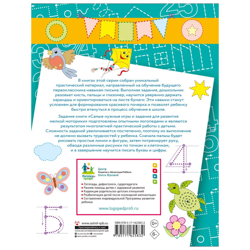 Самые нужные игры и задания для развития мелкой моторики. В книге собран уникальный практический материал, направленный на обучение будущего первоклассника навыкам письма. Сложность заданий увеличивается постепенно, поэтому обучение не должно вызвать трудностей у ребенка. Сначала малыш будет рисовать простые линии и фигуры, затем потренирует руку, обводя различные рисунки по точкам и клеточкам, и в завершение научится писать буквы и цифры. Для дошкольного возраста.