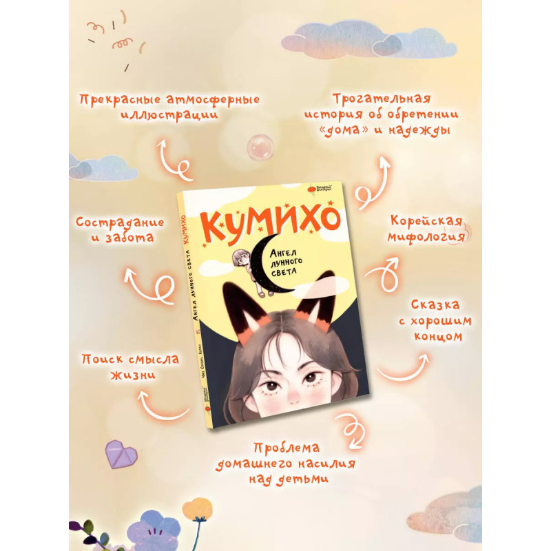 Ангел лунного света кумихо. "Ангел лунного света кумихо" - это трогательная сказка со счастливым концом. Девятихвостая лисица-кумихо пытается стать человеком. Для этого ей нужно прожить 100 дней в городе так, чтобы её не смогли раскрыть люди. На протяжении 85 дней ей это легко удаётся, но потом в квартиру этажом ниже въезжает семья с ребёнком, который каждый день громко плачет. Несчастная судьба малыша трогает кумихо, но при этом она начинает задаваться вопросом: так ли велико её желание стать человеком Согревающая сердце и немного печальная история сопровождается милыми иллюстрациями популярной корейской художницы Херан. Для среднего школьного возраста.