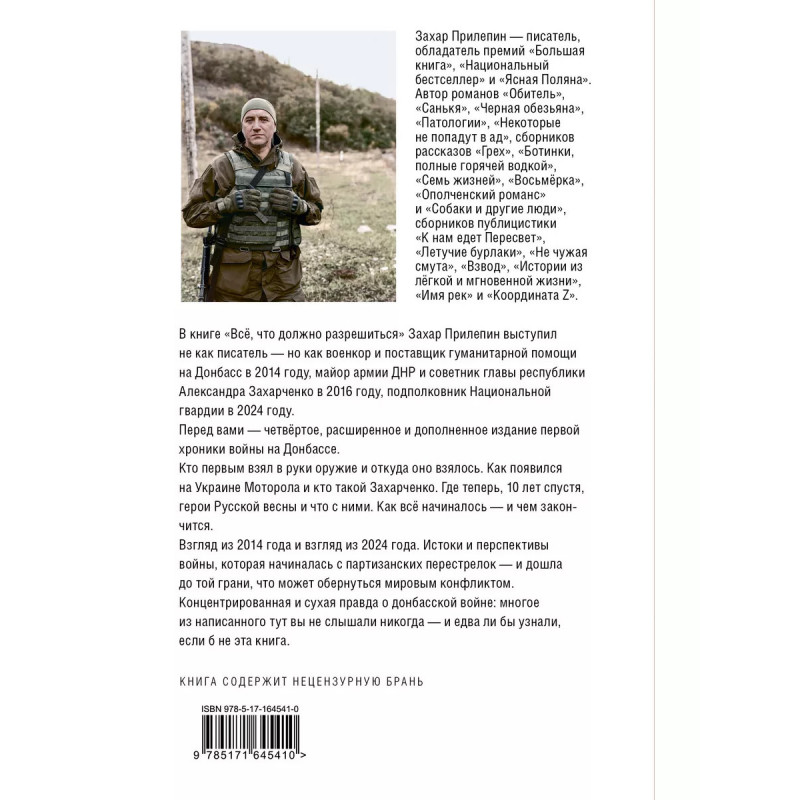 От автора бестселлера Обитель. Четвертое, расширенное и дополненное издание первой хроники войны на Донбассе. Из этой книги вы узнаете, кто первым взял в руки оружие, и откуда оно взялось. Как появился Моторола и кто такой Захарченко. Где спустя 10 лет герои Русской весны и что с ними стало. Как всё начиналось и чем всё закончится.