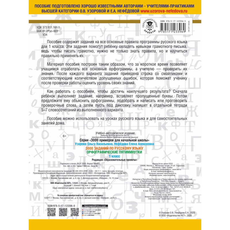 Характеристики 3000 заданий по русскому языку. 1 класс.
