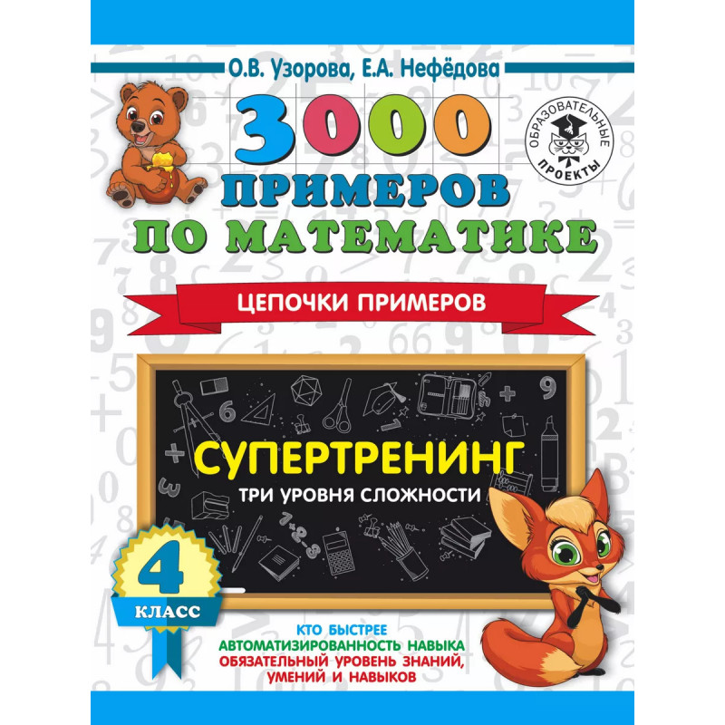 Характеристики 3000 примеров по математике. Супертренинг. 4 класс.