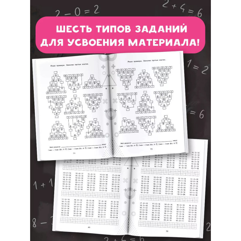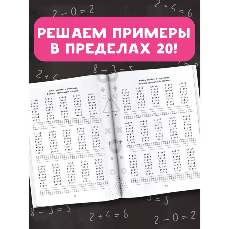В пособие вошли математические примеры по базовым темам начальной школы «Счёт в пределах 10» и «Счёт в пределах 20» и соответствующие алгоритмы вычислений. Задания пособия позволяют обеспечить более глубокое усвоение материала. Ученик не просто решает пример, но и находит ошибки в примерах, вставляет пропущенные числа, решает примеры на время, решает уравнения, выполняет вычисления по схемам.