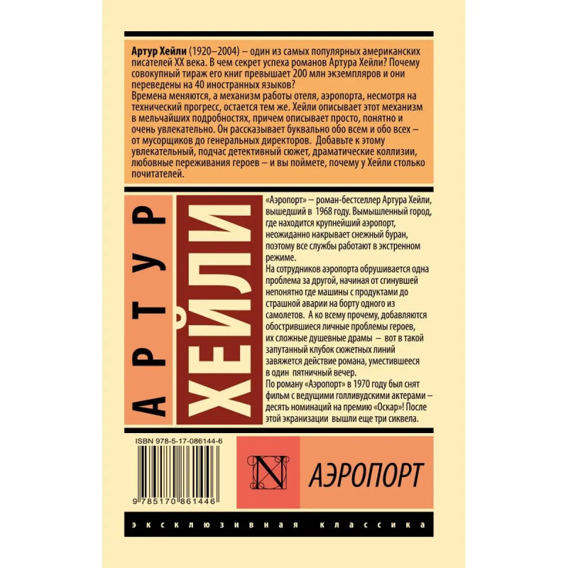 "Аэропорт" роман-бестселлер Артура Хейли, вышедший в 1968 году. Вымышленный город, где находится крупнейший аэропорт, неожиданно накрывает снежный буран, поэтому все службы работают в экстренном режиме. На сотрудников аэропорта обрушивается одна проблема за другой, начиная от сгинувшей непонятно где машины с продуктами до страшной аварии на борту одного из самолетов. А ко всему прочему добавляются обострившиеся личные проблемы героев, их сложные душевные драмы вот в такой запутанный клубок сюжетных линий завяжется действие романа, уместившееся в один пятничный вечер. По роману "Аэропорт" в 197 году был снят фильм с ведущими голливудскими актерами десять номинаций на премию "Оскар"! После этой экранизации вышли еще три сиквела.