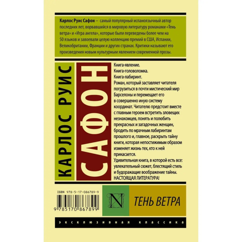 Книга-явление. Книга-головоломка. Книга-лабиринт. Роман, который заставляет читателя погрузиться в почти мистический мир Барселоны и перемещает его в совершенно иную систему координат. Читателю предстоит вместе с главным героем встретить зловещих незнакомцев, понять и полюбить прекрасных и загадочных женщин, бродить по мрачным лабиринтам прошлого, и главное раскрыть тайну книги, которая непостижимым образом изменяет жизнь тех, кто к ней прикасается.
