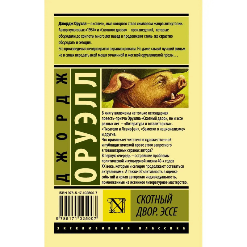В книгу включены не только легендарная повесть-притча Оруэлла "Скотный Двор", но и эссе разных лет - "Литература и тоталитаризм", "Писатели и Левиафан", "Заметки о национализме" и другие. Что привлекает читателя в художественной и публицистической прозе этого запретного в тоталитарных странах автора? В первую очередь - острейшие проблемы политической и культурной жизни 4-х годов XX века, которые и сегодня продолжают оставаться актуальными. А также объективность в оценке событий и яркая авторская индивидуальность, помноженные на истинное литературное мастерство.