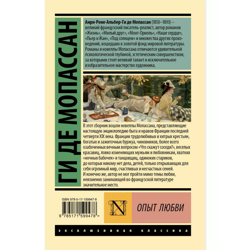 Опыт любви. Сборник короткой прозы Ги де Мопассана - великого французского классика и талантливого новеллиста, прославившегося своей способностью создавать реалистичные портреты персонажей, правдивую природу человеческих взаимоотношений и живое описание быта. Этот сборник - настоящий проводник в жизнь французского общества второй половины XIX века. Понравится поклонникам Гюстава Флобера и Эмиля Золя.