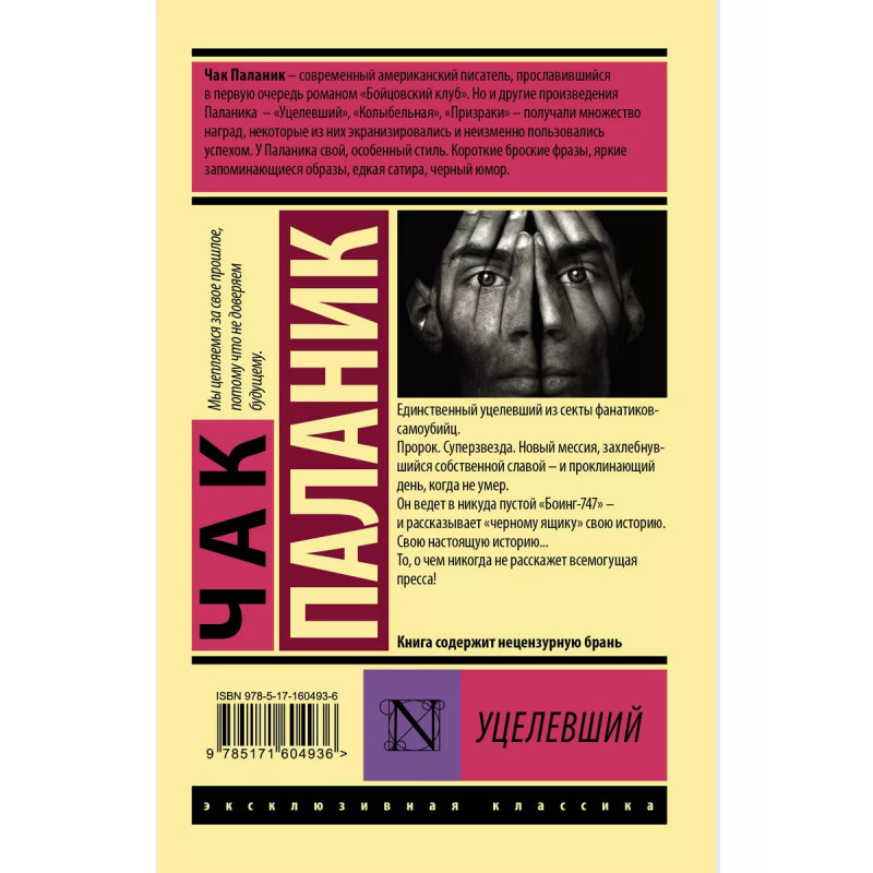Уцелевший. Захватывающая история единственного выжившего из фанатичной религиозной общины, рассказанная необычным способом: от кульминации к завязке. Чак Паланик - всемирно известный автор таких бестселлеров как "Бойцовский клуб", "Удушье", "Призраки", "Колыбельная" и "Ссудный день". Совокупный тираж его книг превышает 4 000 000 экземпляров.