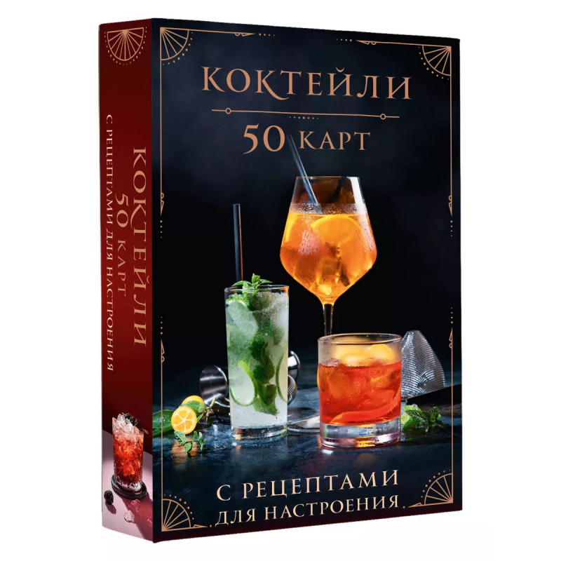 Окунитесь в мир ярких вкусов! "Коктейли: 50 рецептов для настроения" ваш незаменимый спутник на любой вечеринке. Даже если вы на ней одни. 1. Вытяните карту наугад или выберите коктейль под настроение по шкалам сладости, крепости и сложности: от классических до экспериментальных, от нежно-сладких до пикантно-острых. 2. Изучите ингредиенты, вооружитесь инструментами и действуйте. 3. Точно следуйте рецепту или создавайте неповторимые вкусовые сочетания, воспользовавшись идеями карт. 4. Наслаждайтесь каждым глотком и превращайте любой день в праздник!