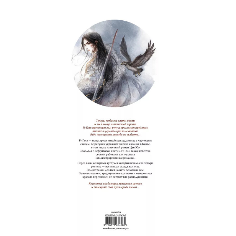Артбук популярной китайской художницы. Понравится любителям творчества Ван Лина (WLOP), Чжи Цзяньтан и других азиатских художников и иллюстраторов. Замечательный подарок для художника и ценителя искусства Китая и других стран Азии. В данное издание вошли сто четыре рисунка, разделенные на пять основных тем. В каждой иллюстрации чувствуется неповторимый стиль Гу Гэли часто сдержанная цветовая палитра; мягкие, нежные линии; легкая меланхолия и нечто незримое, мистическое даже в повседневных сюжетах. Иллюстрации Гу Гэли украшают многие книжные и периодические издания, в том числе популярный роман Цан Юэ Баллада о нефритовой кости.