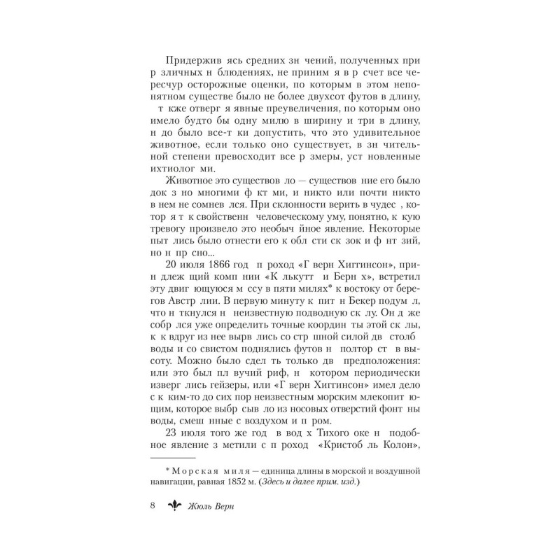 Когда профессор Пьер Аронакс, его слуга Консейль и кито- бой Нед Ленд отправились на поиски неизвестной науке рыбы, они и представить не могли, чем обернется их экспедиция. Странное морское чудище оказывается не живым существом, а подводной лодкой "Наутилус". Но куда больше вопросов вызывает ее хозяин загадочный капитан Немо, прошлое которого окутано тайнами. Вместе им предстоит исследовать бескрайние океанские просторы и пройти под водой двадцать тысяч лье