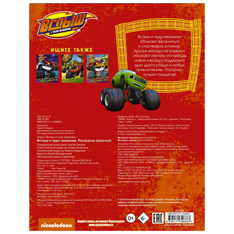 Характеристики Вспыш и чудо-машинки. Раскраска (красная).