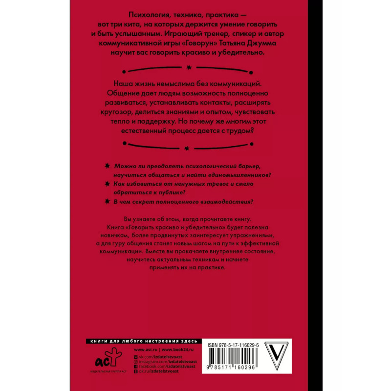 Татьяна Джумма - спикер с 10 летним стажем, у которой прошли обучение более 15 000 человек. Книга научит четко и правильно говорить, поможет вам не только формулировать мысли, но и доносить их до слушателя!