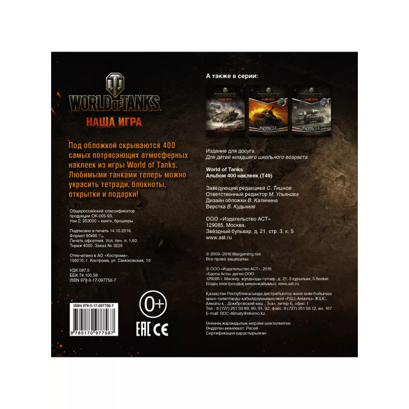 Под обложкой скрываются 400 самых потрясающих атмосферных наклеек из игры World of Tanks. Любимыми танками теперь можно украсить тетради, блокноты, открытки и подарки!