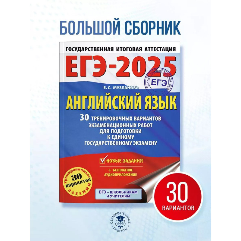 Пособие позволяет в кратчайшие сроки успешно подготовиться к сдаче единого государственного экзамена по английскому языку. Представленные варианты включают в себя все темы, предусмотренные кодификатором ЕГЭ по английскому языку. В каждом блоке разделы "Аудирование", "Чтение", "Грамматика и лексика", "Письмо", в которые вошли экзаменационные задания всех типов и упражнения для отработки необходимых навыков. Сборник содержит 30 полноценных тренировочных вариантов, соответствующих параметрам ЕГЭ, тексты для аудирования и ключи-ответы к заданиям.