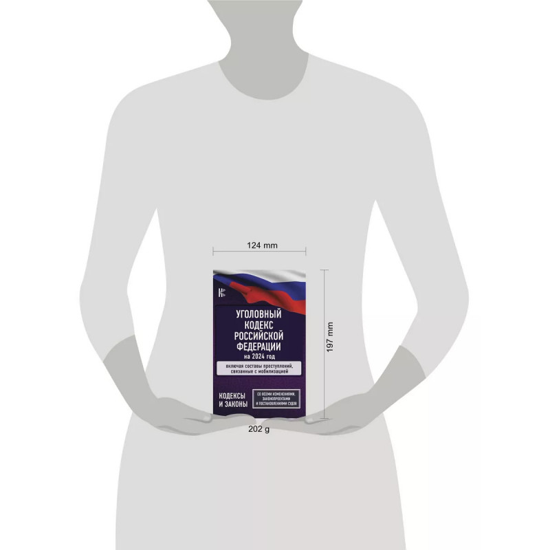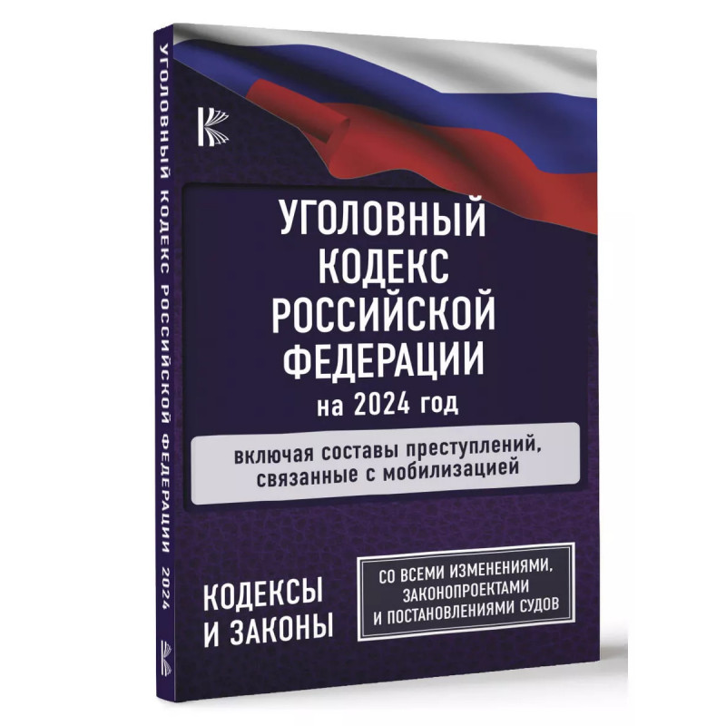 Уголовный Кодекс Российской Федерации на 2024 год. Включая составы преступлений, связанные с мобилиз. Данное издание включает сверенный с официальными источниками текст Уголовного кодекса Российской Федерации на 2024 год, включая составы преступлений, связанные с мобилизацией. Кодекс учитывает все изменения, опубликованные в официальных источниках на момент подписания издания в печать. В издании представлена информация о возможных изменениях в УК РФ по результатам принятия законопроектов, находящихся на рассмотрении в Государственной Думе РФ. Для более удобного использования в тексте кодекса применяется система сокращенного написания отдельных слов и выражений, а также приводятся ссылки на федеральные законы, постановления и определения высших судебных органов Российской Федерации, относящиеся к вопросам применения норм уголовного права.