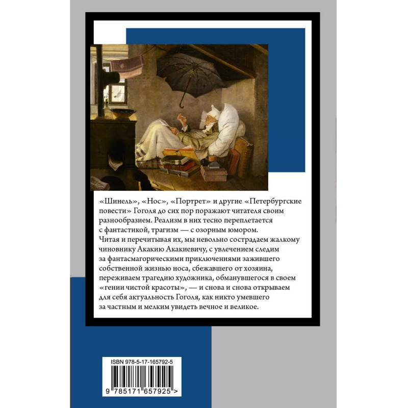 Классика русской литературы. Включает знаменитую комедию Ревизор. В данное издание вошли произведения из авторского сборника Петербургские повести. Все тексты сборника объединяет место действия Петербург сороковых годов позапрошлого века и проблема маленького человека не одаренного выдающимися способностями и силой характера представителя низших ступеней социальной лестницы.