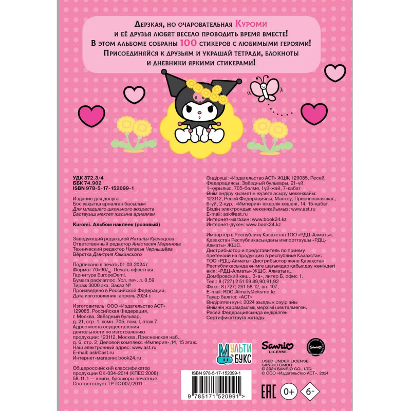 Дерзкая, но очаровательная Куроми и ее друзья любят весело проводить время вместе! В этом альбоме собраны 100 стикеров с любимыми героями! Присоединяйся к друзьям и украшай тетради, блокноты и дневники яркими стикерами!