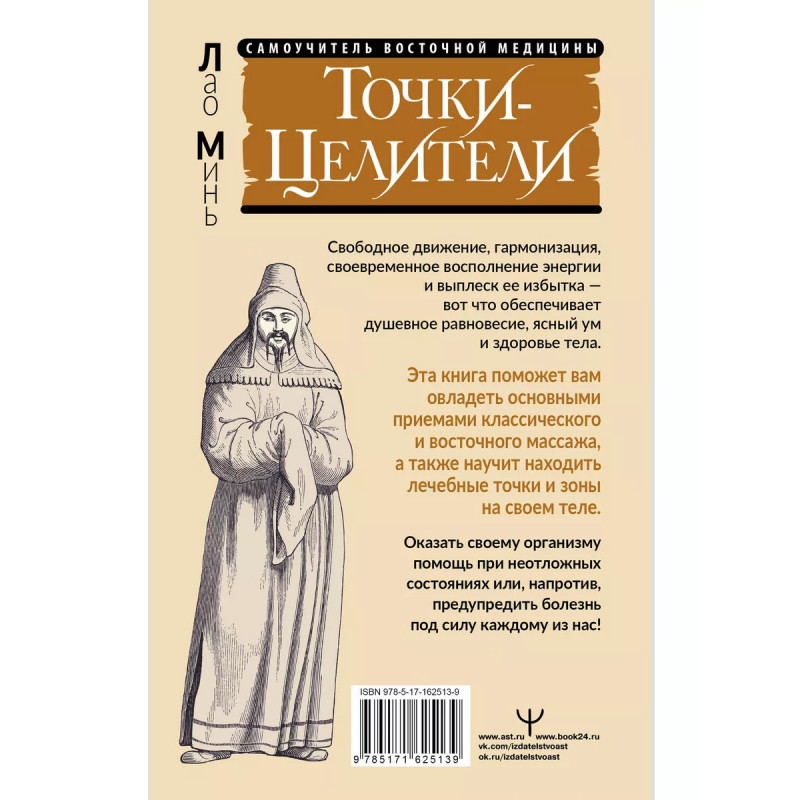 Точки-целители. Приемы восточного массажа для расслабления и исцеления. Книга специалиста по восточным оздоровительным практикам Лао Миня поможет вам справиться с хроническим стрессом и минимизировать его негативное влияние на ваше здоровье. "Все болезни от нервов" - не просто слова. Хронический стресс порождает напряжение, затрудняющее нормальную циркуляцию энергии ци по телу и вызывающее нарушения в работе всех органов. Книга содержит подробное описание классических массажных приемов, специальных техник китайского массажа и методов су-джок-терапии. Детальный атлас энергетических меридианов и зон подобия по системе су-джок поможет вам найти нужные биологически активные точки и зоны для максимально эффектного воздействия на все органы и системы вашего организма. Эта книга - настоящий учебник самопомощи при неотложных состояниях и при лечении хронических заболеваний, а также для профилактики множества болезней. Освоив несложные массажные приемы, вы сможете помочь себе и своим близким избавиться от проблем со здоровьем. Особенности книги " Книга будет полезна всем, кто интересуется