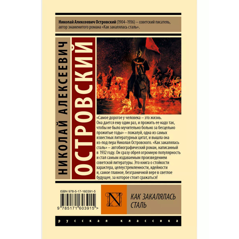 Как закалялась сталь. "Самое дорогое у человека - это жизнь. Она дается ему один раз, и прожить ее надо так, чтобы не было мучительно больно за бесцельно прожитые годы" - пожалуй, одна из самых известных литературных цитат, и вышла она из-под пера Николая Островского. "Как закалялась сталь" - автобиографический роман, написанный в 1932 году. Роман сразу обрел огромную популярность и стал самым издаваемым произведением советской литературы. Это книга о стойкости характера, целеустремленности, идейности и, самое главное, безграничной вере в светлое будущее, за которое стоит сражаться!