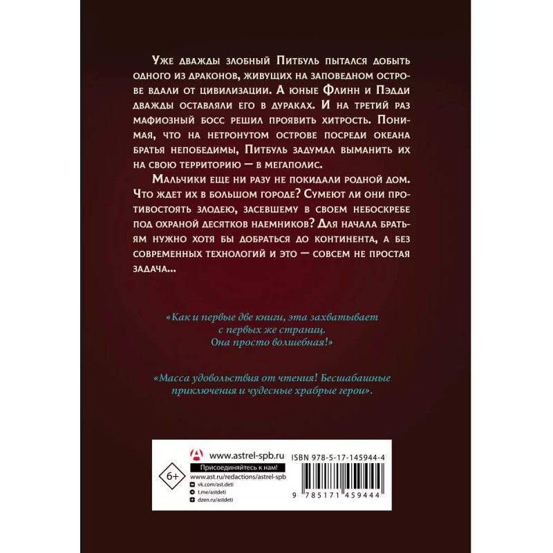 В прошлый раз у Питбуля не получилось добыть ни дракона, ни хотя бы драконье яйцо. Так что в этот раз он купил целый корабль и два вертолёта, чтобы вернуться на затерянный посреди океана островок, где живут драконы. Теперь братьям придется очень и очень постараться, чтобы отразить новую атаку злобного босса. Тем более, что негодяй решает подстраховаться и первым делом захватывает в заложники их родителей и младшую сестренку. Кажется, шансов одержать верх у Флинна и Пэдди немного... Разве что они найдут общий язык с дикими драконами, чтобы обрести в них мощных и грозных союзников!