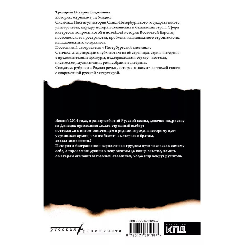 События Русской весны врываются в жизнь обычной семьи из Донецка. Девочке-подростку предстоит сделать самый главный выбор в жизни: остаться ли с отцом-ополченцем в городе, к которому уже подходит украинская армия. Повесть написана в духе лучших произведений советской литературы для подростков и молодёжи.