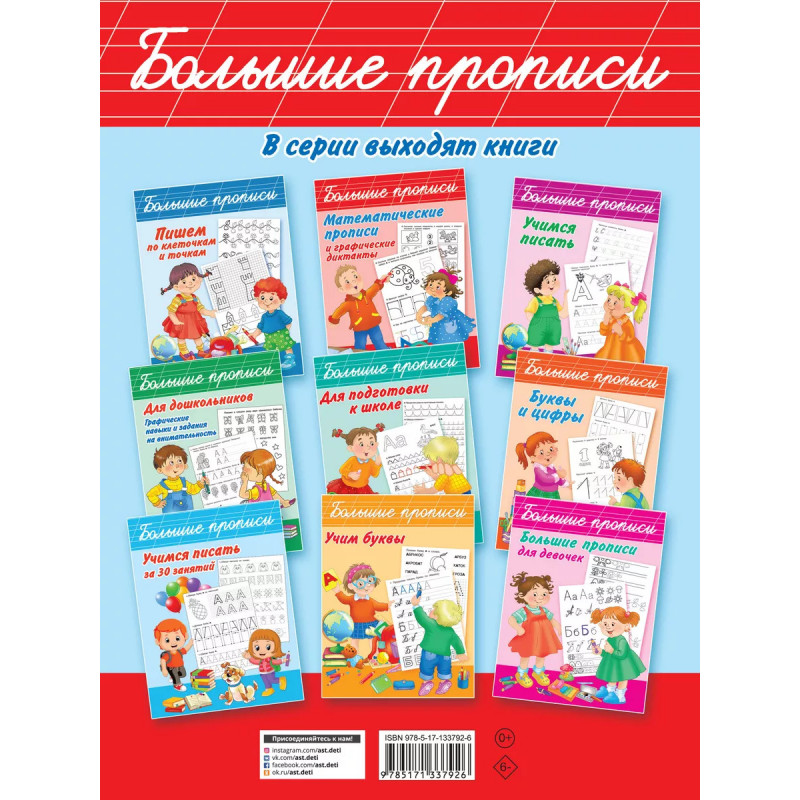 О чем эта книга Прописи с прозрачными страницами развивающий сборник для знакомства с буквами алфавита и подготовки руки к письму. Кому эта книга будет интересна Пособие адресовано будущим первоклассникам, а также родителям, заинтересованным в успешной подготовке детей к школе. Занимаясь по сборнику графических упражнений, дошколята научатся писать письменные буквы. Каковы особенности этой книги Сборник представляет собой рабочую тетрадь для формирования графических навыков: ребенок познакомится с азбукой и научится писать письменные буквы. Это здорово обводить буквы и картинки через прозрачные страницы. Занимательные упражнения совершенствуют ловкость и точность движений, развивают мелкую моторику, внимание, память, вырабатывают усидчивость. Замечательные прописи обязательно порадуют ребёнка и станут незаменимым помощником для подготовки будущего первоклассника к школе.
