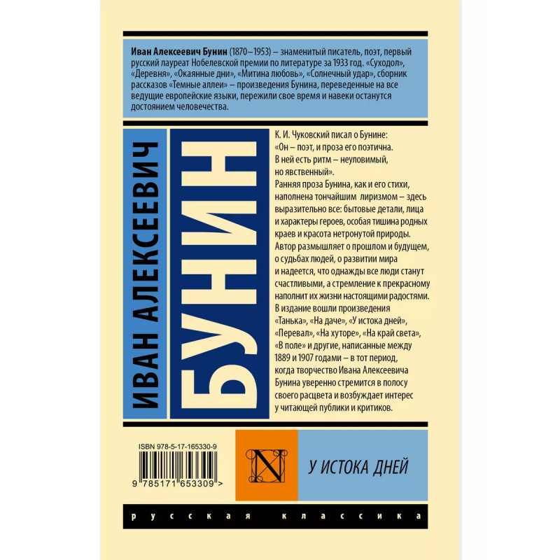От автора книг Господин из Сан-Франциско и Темные аллеи. В данное издание вошли произведения Танька, На даче, У истока дней, Перевал, На хуторе, На край света, В поле и другие, написанные между 1889 и 1907 годами в тот период, когда творчество Ивана Алексеевича Бунина уверенно стремится в полосу своего расцвета и возбуждает интерес у читающей публики и критиков. Ранняя проза Бунина, как и его стихи, наполнена тончайшим лиризмом здесь выразительно все: бытовые детали, лица и характеры героев, особая тишина родных краев и красота нетронутой природы. Автор размышляет о прошлом и будущем, о судьбах людей, о развитии мира и надеется, что однажды все люди станут счастливыми, а стремление к прекрасному наполнит их жизни настоящими радостями.