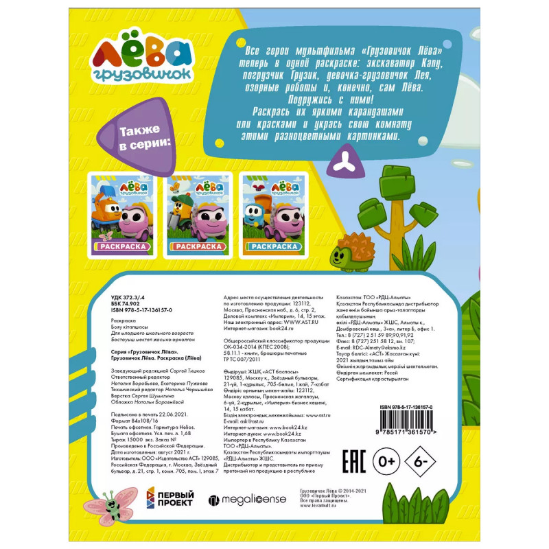 Новинка для фанатов мультсериала Грузовичок Лёва. Раскраска с любимыми персонажами Лёва, Капа, Грузик, Лея. Машинки-друзья не только веселятся и играют, но еще и совершают добрые дела и помогают друг другу. Лёва собирает машины и роботов и учит тебя азам техники. Раскрашивай любимых героев и веселись вместе с ними. А еще развивай логику, внимательность, конструкторское мышление и память.