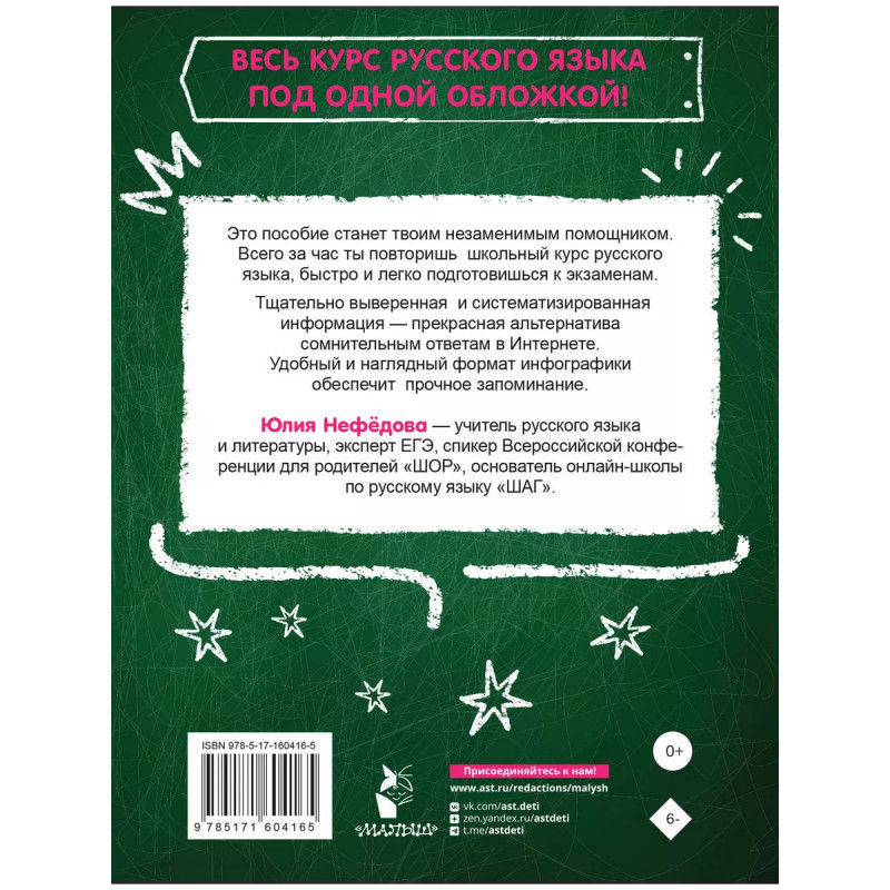 До экзамена всего ночь?! Не беда! Эта книга поможет быстро повторить весь школьный курс русского языка. Использование мнемических приемов визуализации и схематизации информации позволит быстро уложить в памяти необходимые знания и при необходимости легко их воспроизвести. Автор книги Юлия Нефедова учитель русского языка и литературы, эксперт ЕГЭ, спикер Всероссийской конференции для родителей ШОР, основатель онлайн-школы по русскому языку ШАГ.