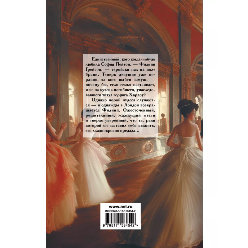 Единственный, кого когда-нибудь любила София Пейтон, Филипп Грейсон, геройски пал на поле брани. Теперь девушке уже все равно, за кого выйти замуж, почему бы, если семья настаивает, и не за кузена погибшего, унаследовавшего титул герцога Харлоу? Однако порой чудеса случаются и однажды в Лондон возвращается Филипп. Ожесточенный, решительный, жаждущий мести и твердо уверенный, что та, ради которой он заставил себя выжить, его хладнокровно предала...