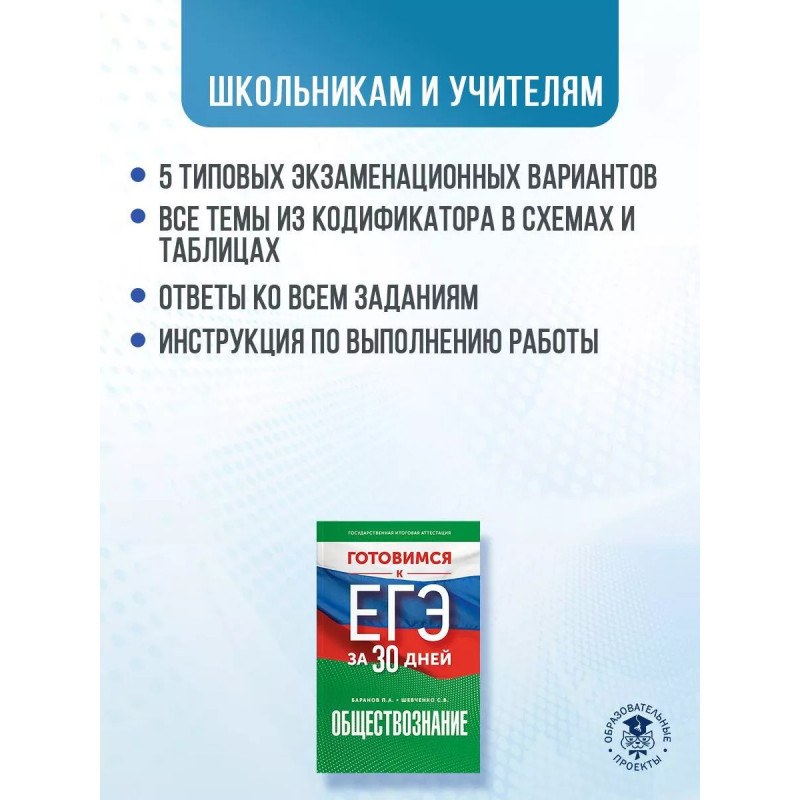 Характеристики Готовимся к ЕГЭ за 30 дней. Обществознание.