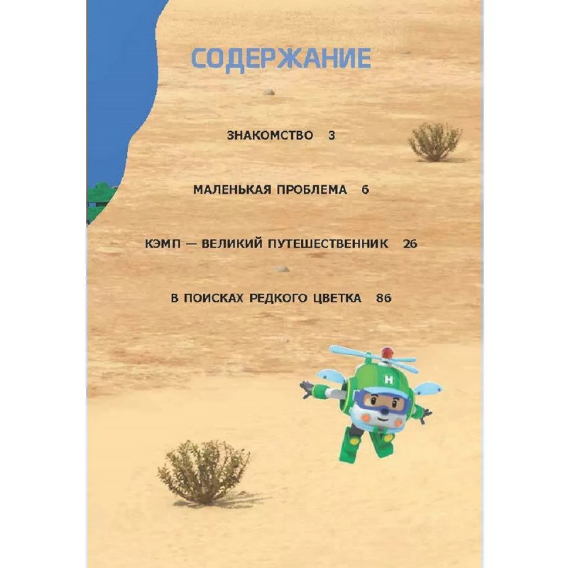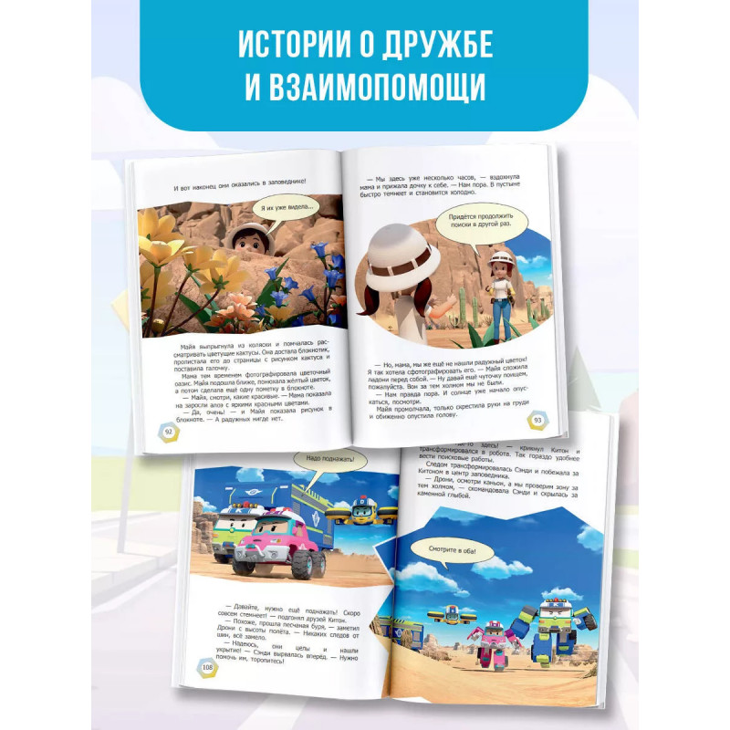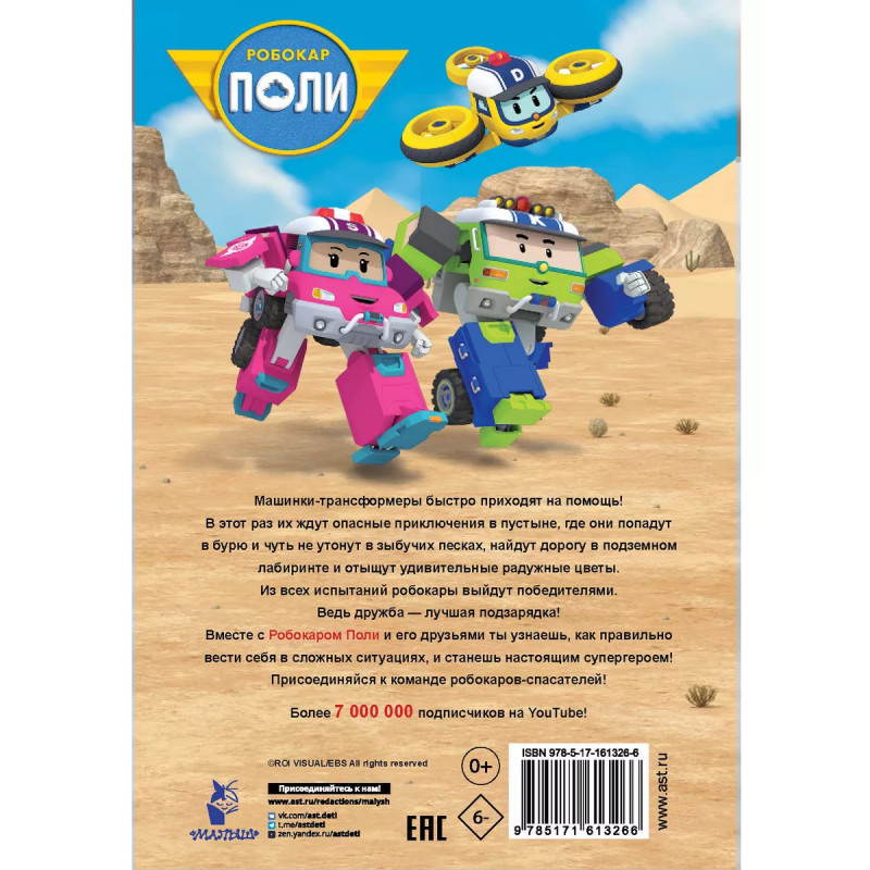 Познакомься с Робокаром Поли и его друзьями! Машинки-трансформеры следят за порядком в городе и незамедлительно приходят на помощь. В этот раз их ждут опасные приключения в пустыне, где они попадут в бурю и чуть не утонут в зыбучих песках, найдут дорогу в подземном лабиринте и отыщут удивительные радужные цветы. Из всех испытаний они выйдут победителями, потому что найдут новых друзей-спасателей. Вместе с Робокаром и его друзьями ты узнаешь, как правильно вести себя в опасных ситуациях и станешь настоящим супергером! Присоединяйся к команде робокаров!