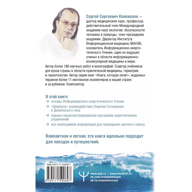 Энергетические упражнения семи лечебных дней. В книге профессора, Доктора Сергея Сергеевича Коновалова подробно описаны семь заочных сеансов, в основе которых лежит формула взаимодействия Информационных Полей Энергии Сотворения и Физического Мира. Книга содержит основы Информационно-энергетического Учения, изложенные в конспективной форме, и всю информацию, необходимую для проведения заочного лечения. В книге вы найдете подробную, хорошо проиллюстрированную программу энергетических упражнений для тех, кто не всегда имеет возможность взять с собой большой том Доктора Коновалова "Заочное лечение. Книга вторая". Книга особенно актуальна в связи с событиями последних лет - вирусной атакой на человечество. Программа семи лечебных дней позволяет начать восстановление всех систем организма в самое короткое время. Удобный формат, подробно изложенная программа энергетических упражнений, вся необходимая информация для проведения заочного сеанса - в компактном легком томе. Эта книга идеально подходит для поездок и путешествий. Суммарный тираж книг автора - более 11