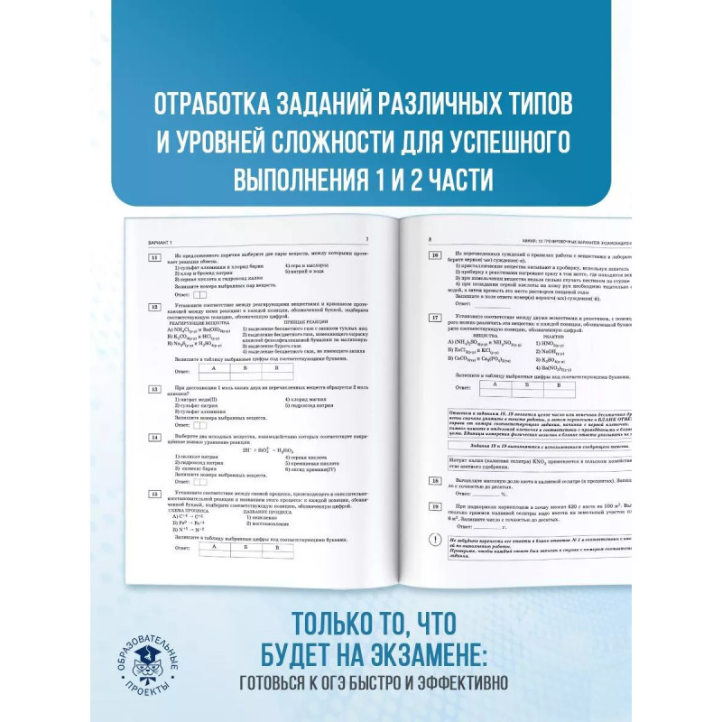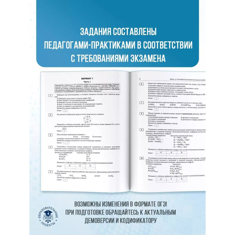 Сборник содержит 10 тренировочных вариантов экзаменационных работ по химии и предназначен для подготовки к основному государственному экзамену в 9 классе. Каждый вариант включает тестовые задания разных типов и уровней сложности, соответствующие частям 1 и 2 экзаменационной работы. В конце книги даны ответы для самопроверки на все задания. Предлагаемые тренировочные варианты помогут учителю организовать подготовку к итоговой аттестации, а учащимся самостоятельно проверить свои знания и готовность к сдаче выпускного экзамена.