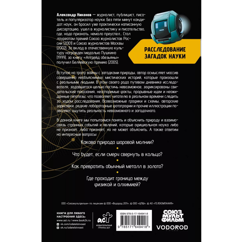 Известный журналист и автор множества научно-популярных изданий Александр Никонов в своей книге пытается понять природу и взаимосвязь странных событий и явлений, которые официальная наука либо не признает, либо признает, но не может объяснить. Какова природа шаровой молнии? Что будет, если смерч свернуть в кольцо? Как превратить обычный металл в золото? И где проходит граница между физикой и алхимией? Вступая на тропу войны с загадками природы, автор осмысляет массив совершенно необъяснимых мистических историй, которые произошли с реальными людьми. В этом своего рода путевом дневнике исследователя, задавшегося целью постичь невозможное, зафиксированы свидетельские показания, неоспоримые факты, прорывные идеи и неожиданные гипотезы, что позволяет читателю в реальном времени следить за ходом расследования. Всевозможные графики и схемы, авторские зарисовки, редкие лабораторные фотографии и прочие иллюстрации позволяют ощутить реальность невозможного и загадочного.