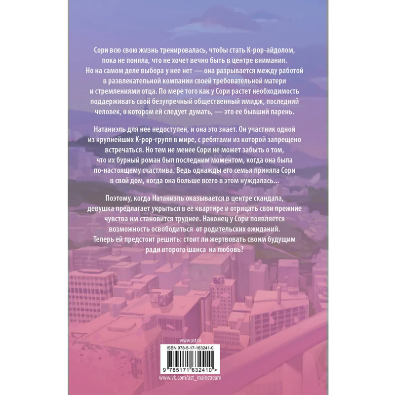 От автора бестселлера XOXO. Целую. Обнимаю! Для фанатов к-попа, дорам и для тех, кто хочет заглянуть за кулисы корейского шоу-бизнеса. Легкая романтическая история о трудностях личной жизни айдолов. Нежная атмосферная обложка от murakimyo. Понравится тем, кому пришлись по душе романы Я верю в любовь Гу Морин, Вы дозвонились до Сэма Дастина Тао и XOXO. Целую. Обнимаю Акси О.