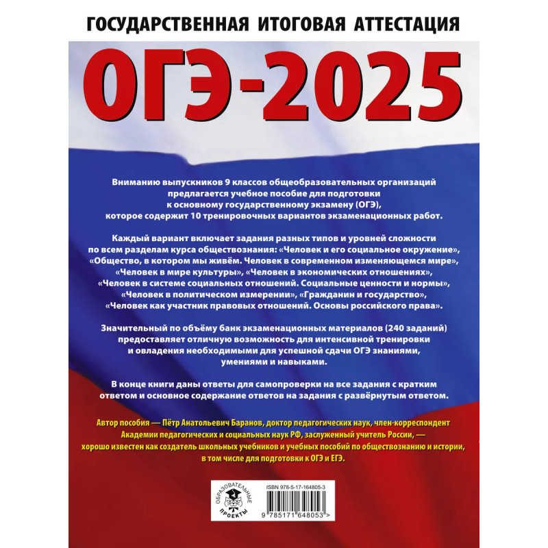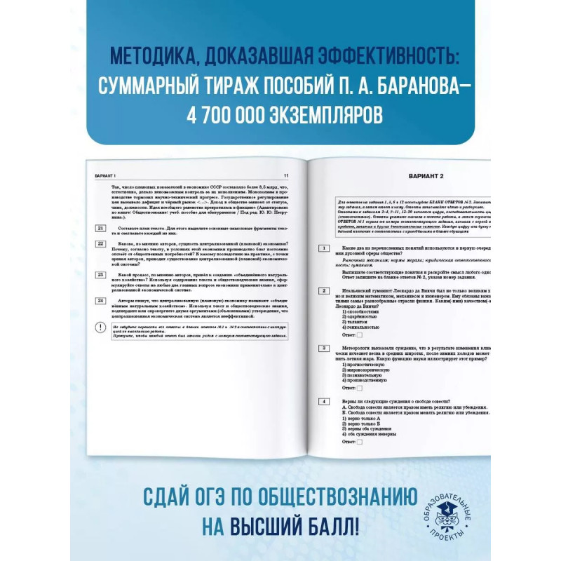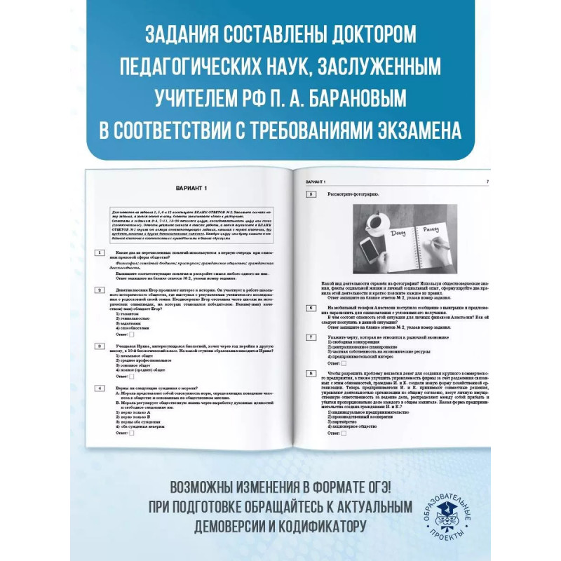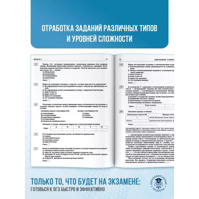 Вниманию выпускников 9 классов общеобразовательных организаций предлагается учебное пособие для подготовки к основному государственному экзамену (ОГЭ), которое содержит 10 типовых вариантов экзаменационных работ. Каждый вариант включает задания разных типов и уровня сложности по всем содержательным блокам-модулям курса обществознания: "Человек и его социальное окружение", "Общкство, в котором мы живём, Человек в современном изменяющемся мире", "Человек в мире культуры", "Человек в экономических отношенияхКо всем заданиям даны ответы или их основное содержание., "Человек в системе социальных отношений. "Социальные ценности и нормы", "Человек в политическом измерении", "Гражданин и государство", Человек как участник правовых отношений".