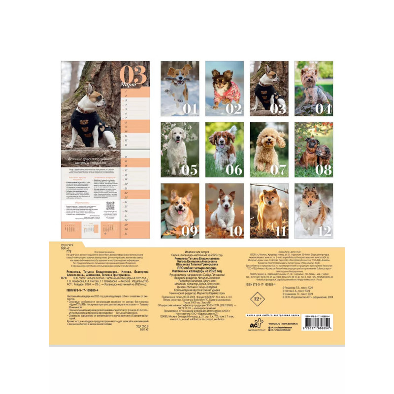 Характеристики ПРО собак: четыре сезона. Настенный календарь на 2025 год.