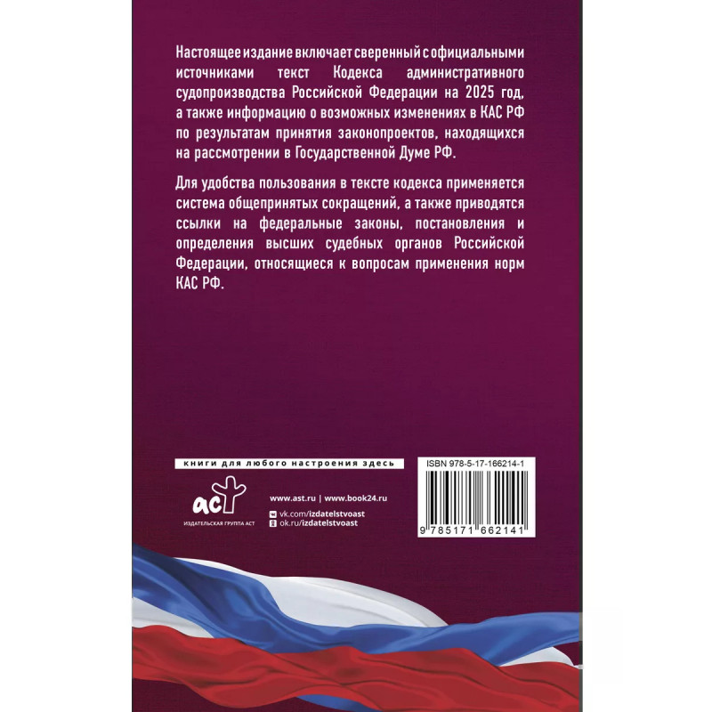 Данное издание Кодекса административного судопроизводства РФ сверено с официальным источником и приводится по состоянию на 2025 год. Кодекс учитывает все изменения, опубликованные в официальных источниках на момент подписания издания в печать. В издании представлена информация о возможных изменениях в КАС РФ по результатам принятия законопроектов, находящихся на рассмотрении в Государственной Думе РФ. Для удобства пользования в тексте кодекса применяется система общепринятых сокращений, а также приводятся ссылки на федеральные законы, постановления Правительства Российской Федерации, постановления и определения высших судебных органов Российской Федерации, относящиеся к вопросам применения норм КАС РФ.