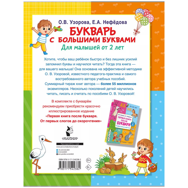 Характеристики Букварь с большими буквами для малышей от 2-х лет.
