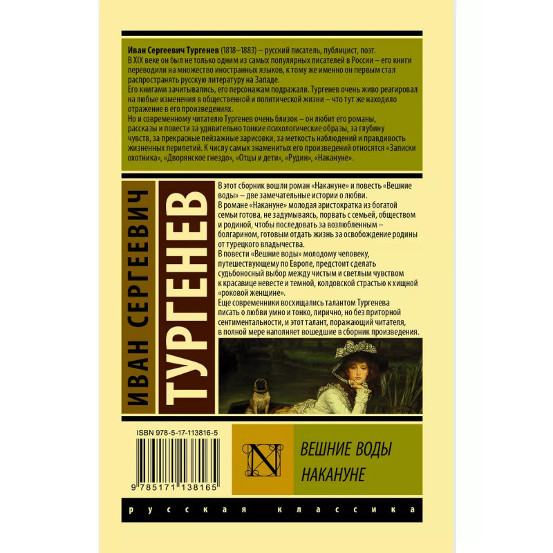 Вешние воды. Накануне. В этот сборник вошли роман "Накануне" и повесть "Вешние воды" - две замечательные истории о любви. В романе "Накануне" молодая аристократка из богатой семьи готова не задумываясь порвать с семьей, обществом и родиной, чтобы последовать за возлюбленным - болгарином, готовым отдать жизнь за освобождение родины от турецкого владычества. В повести "Вешние воды" молодому человеку, путешествующему по Европе, предстоит сделать судьбоносный выбор между чистым и светлым чувством к красавице-невесте и темной, колдовской страстью к хищной "роковой женщине". Еще современники восхищались талантом Тургенева писать о любви умно и тонко, лирично, но без приторной сентиментальности, - и этот талант, поражающий и притягивающий и современного читателя, в полной мере наполняет вошедшие в сборник произведения.