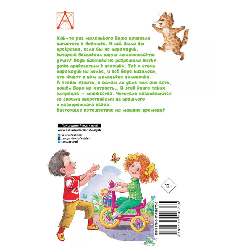 Рассказы русских писателей. Как-то раз маленького Борю привезли погостить к бабушке. И всё было бы прекрасно, если бы не пароходик, который беспокоил юную мальчишескую душу! Ведь бабушка не разрешала внуку даже прикасаться к игрушке. Так и стоял пароходик на полке, и всё Боре казалось, что живут в нём маленькие человечки. А чтобы узнать, в самом ли деле там они есть, пошёл Боря на хитрость В этой книге таких хитрецов - множество. Читатель познакомится со своими сверстниками из прошлого и позапрошлого веков. Настоящее путешествие на машине времени!