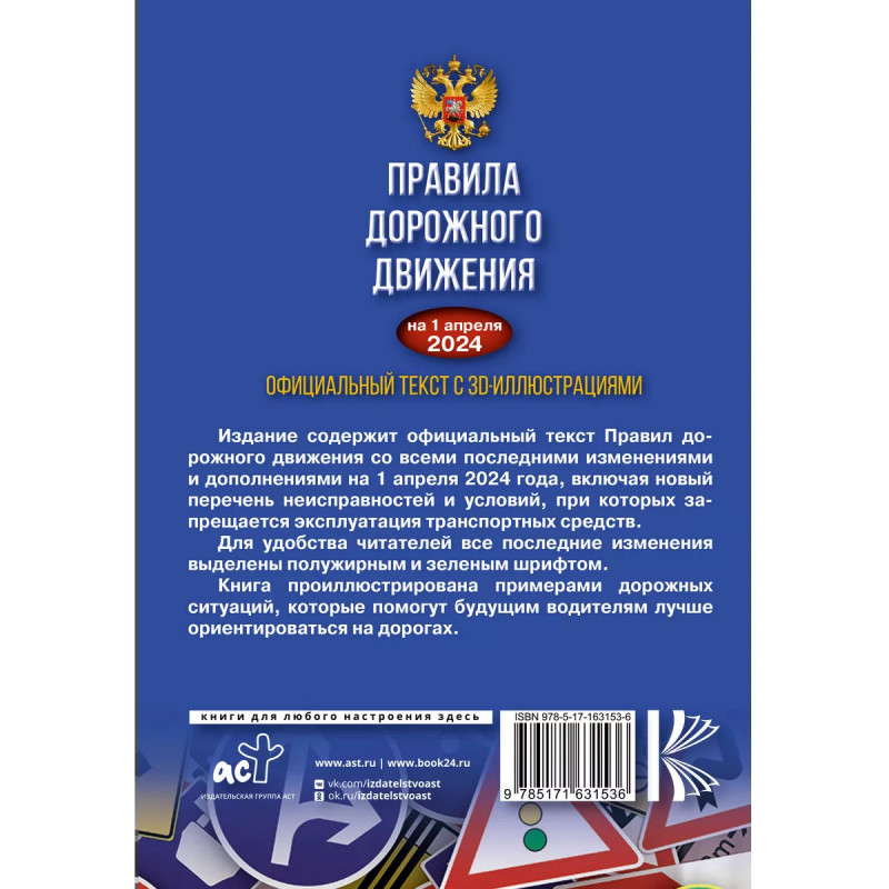 Издание содержит официальный текст Правил дорожного движения со всеми последними изменениями и дополнениями на 1 апреля 2024 года, включая новый перечень неисправностей и условий, при которых запрещается эксплуатация транспортных средств. Для удобства читателей все последние изменения выделены полужирным и зеленым шрифтом. Книга проиллюстрирована примерами дорожных ситуаций, которые помогут будущим водителям лучше ориентироваться на дорогах. Издание учитывает все изменения, опубликованные в официальных источниках на момент подписания издания в печать.