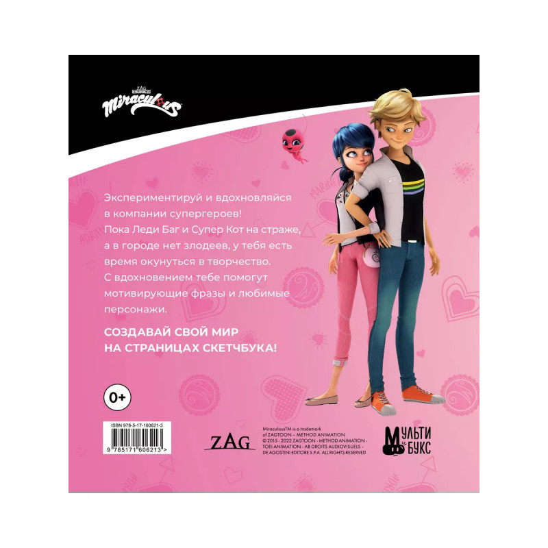 Экспериментируй и вдохновляйся в компании супергероев! Пока Леди Баг и Супер Кот на страже, а в городе нет злодеев, у тебя есть время окунуться в творчество. С вдохновением тебе помогут мотивирующие фразы и любимые персонажи. СОЗДАВАЙ СВОЙ МИР НА СТРАНИЦАХ СКЕТЧБУКА!