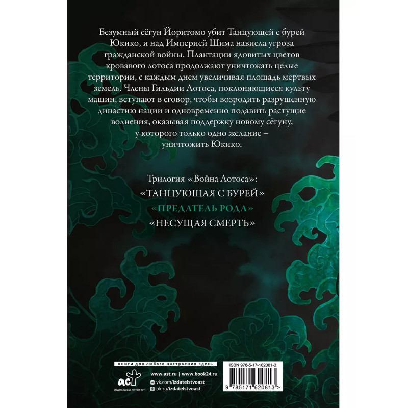 Предатель рода. Вторая книга серии "Война Лотоса". Сёгун Йоритомо гибнет от руки Юкико, и над империей нависает угроза гражданской войны. Плантации ядовитых цветов кровавого лотоса продолжают стирать с лица земли огромные территории, а члены Гильдии Лотоса вынашивают планы восстановить разрушенную династию нации. Главная цель нового сёгуна - уничтожить Юкико любой ценой. Надвигается буря. Сможет ли девушка станцевать и с ней?