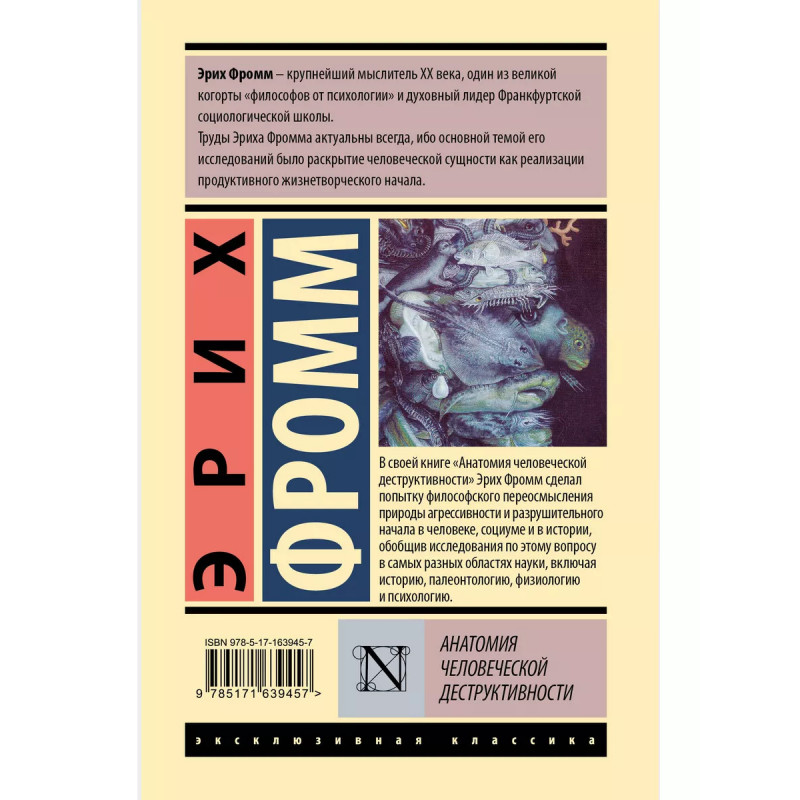 В своей книге "Анатомия человеческой деструктивности" Эрих Фромм сделал попытку философского переосмысления природы агрессивности и разрушительного начала в человеке, социуме и в истории, обобщив исследования по этому вопросу в самых разных областях науки, включая историю, палеонтологию, физиологию и психологию.