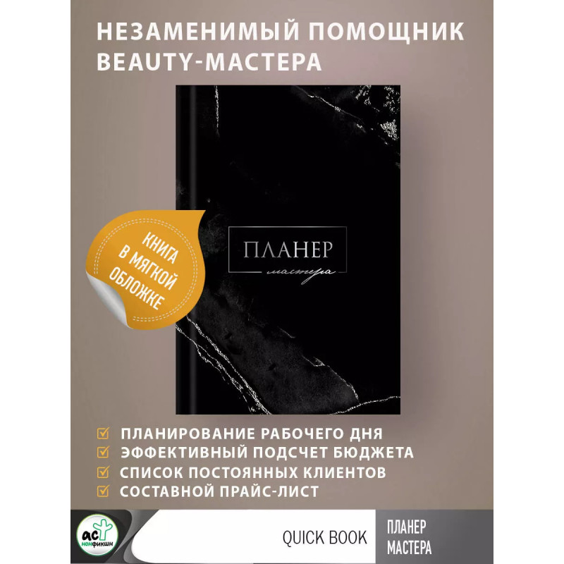 Этот планер - незаменимый помощник для beauty-мастеров, ведь в нем есть: " Планирование рабочего дня " Эффективный подсчет своего бюджета " Ведение списка закупок расходных материалов " Удобное составление прайс-листа beauty-услуг " Список постоянных клиентов