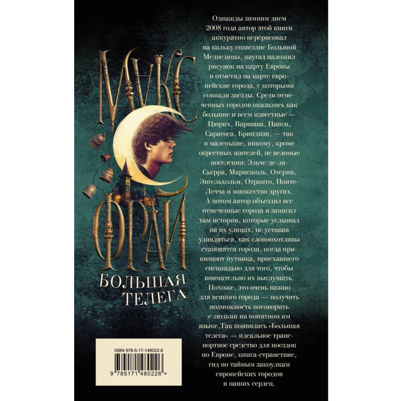 Большая телега. Однажды зимним днем 2008 года автор этой книги аккуратно перерисовал на кальку созвездие Большой Медведицы, наугад наложил рисунок на карту Европы и отметил на карте европейские города, с которыми совпали звезды. Среди отмеченных городов оказались как большие и всем известные - Цюрих, Варшава, Нанси, Сарагоса, Бриндизи, - так и маленькие, никому, кроме окрестных жителей неведомые поселения: Эльче-де-ла-Сьерра, Марвежоль, Отерив, Энгельхольм, Отранто, Понте-Лечча и множество других. А потом автор объездил все отмеченные города и записал там истории, которые услышал на их улицах, не уставая удивляться, как словоохотливы становятся города, когда принимают путника, приехавшего специально для того, чтобы внимательно их выслушать. Похоже, это очень важно для всякого города - получить возможность поговорить с людьми на понятном им языке. Так появилась "Большая телега" - идеальное транспортное средство для поездок по Европе, книга-странствие, гид по тайным закоулкам европейских городов и наших сердец.