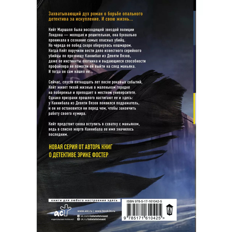 Девять вязов. " Остросюжетный роман от автора бестселлера "Девушка во льду". " Книги Роберта Брындзы проданы тиражом более 3 000 000 экземпляров. " В новом романе писатель объединил захватывающий детективный сюжет с элементами психологического триллера, создав впечатляющую историю о поиске серийного убийцы по кличке Каннибал из Девяти Вязов. " "Девять Вязов" понравится фанатам триллеров о Ганнибале Лектере. Кейт Маршалл - восходящая звезда полиции Лондона. Она проникает в сознание самых опасных убийц, видит их коварные мотивы насквозь. Но ни отточенные навыки, ни интуиция не помогли Кейт выследить безупречного и неуловимого хищника - Каннибала из Девяти Вязов. Он нашел ее сам Тогда Кейт все же удалось остановить маньяка. Но надолго ли? После тех роковых событий пятнадцать лет спокойствия внезапно закончились. У Каннибала из Девяти Вязов появился подражатель. По улицам города прокатилась новая волна убийств, и вскоре полиция возобновляет давно закрытое дело. Тот, для кого старается преданный фанат, тот, чье дело еще не зак